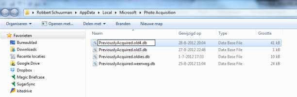 Open Uitvoeren (Windows-toets+R) en typ: C:\Users\%username%\AppData\Local\Microsoft\Photo Acquisition. Pas de naam van het bestand PreviouslyAcquired.db aan of verwijder het.