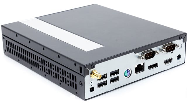 Wat de players betreft, onderscheiden we zowel interne als externe modellen. De interne exemplaren kun je in specifieke displays inbouwen. Er zijn echter ook externe, passief gekoelde modellen die compact genoeg zijn om onopvallend achter een scherm te plaatsen, zoals een mini-pc. Wij gebruiken voor ons eigen systeem onder meer een Shuttle-barebone DX 30, waaraan we drie (televisie-)schermen gekoppeld hebben via displayport, hdmi en een extra vga-adapter, die elk andere content krijgen doorgestuurd.