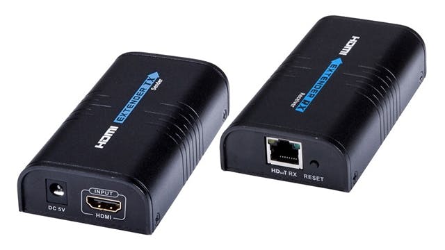 Staan de player en de displays op dezelfde plek, dan kunnen de beelden via displayport of hdmi door de player worden verstuurd. Staan ze te ver uit elkaar, dan biedt bijvoorbeeld een (actief gevoede) hdmi-extender via utp een mogelijke oplossing. Degelijke producten vind je al vanaf ongeveer zeventig euro. Zo’n extender-set bestaat uit een zender en een ontvanger, waarbij elk apparaat zowel een netwerkpoort als een hdmi-aansluiting heeft. Afhankelijk van de gebruikte ethernetkabel kun je dan een bepaalde afstand overbruggen, tot wel 120 meter met een Cat6-kabel.