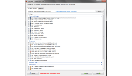 Het programma kent twee mogelijkheden om uw opslagmedium te scannen, namelijk de Dig Deep- en de Dig Deeper-scan. De eerste variant gaat op zoek naar verwijderde bestanden, terwijl de tweede variant nog een stapje verder gaat door zelfs delen van verloren bestanden boven water te halen. Hierbij kunt u aangeven welke (delen van) bestanden opgegraven dienen te worden, zoals bijvoorbeeld afbeeldingen, muziekbestanden of documenten. Nadeel is echter wel dat het scannen uw geduld aardig op de proef stelt. Vooral de diepgravende scan heeft veel tijd nodig, afhankelijk van de grootte van uw schijf natuurlijk. Ook aan de snelle scan kleeft een nadeel, in praktijk blijkt deze scan minder te achterhalen dan de diepgravende scan.