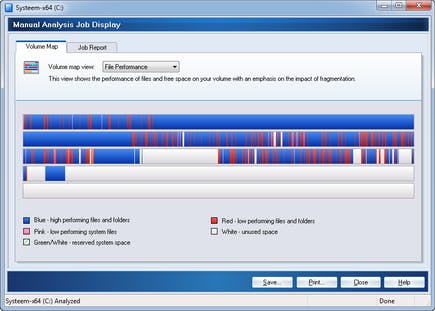 Diskeeper maakt de fragmentatie inzichtelijk via een 'plattegrond'.