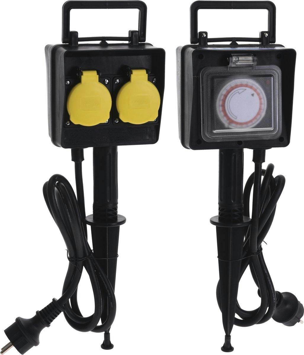 Als je buiten een camera, een terrasverwarmer of iets anders wilt aansluiten, dan heb je natuurlijk wel stroom nodig. Grote kans dat je maar één stroomaansluiting voor buiten hebt. Deze stekkerdoos van ComfortTrends is speciaal gemaakt voor buitengebruik en biedt je twee stopcontacten. Handig is bovendien dat je de stekkerdoos middels de meegeleverde spies zo in de aarde kunt steken. De stopcontacten zijn geaard en kunnen maximaal 3500 watt aan. Als klap op de vuurpijl heeft de stekkerdoos ook nog een tijdschakelaar.