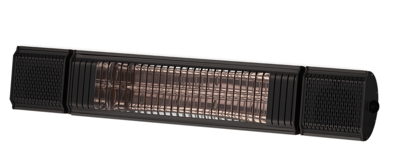 Deze terrasverwarmer heeft een vermogen van 2000 watt en kan daarmee een oppervlakte van wel twaalf vierkante meter verwarmen. De verwarming kan via een app worden aan- of uitgezet en bevat ook nog eens een soundbar en ledverlichting zodat je eigenlijk geen andere dingen in je tuin nodig hebt. Zo kun je ook in de winter gewoon lekker buiten zitten en genieten van de warmte en wat muziek.