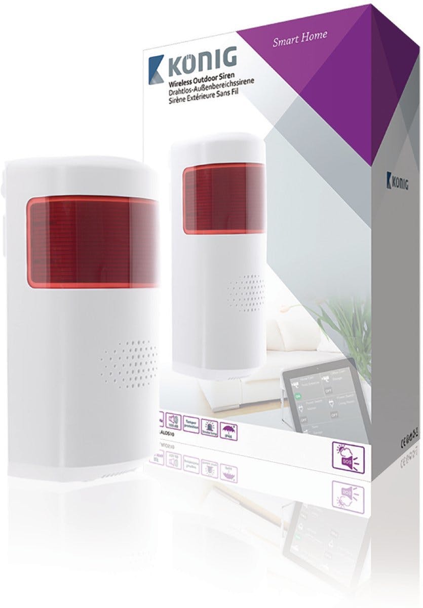 Als je een camerasysteem van König hebt geïnstalleerd, dan kun je deze uitbreiden met de Smart Siren Outdoor. Als de camera een indringer ziet, dan kan het automatisch via deze slimme sirene een alarm laten afgaan. Uiteraard kun je met de König-app ook handmatig een alarm laten afgaan of juist een vals alarm snel weer uitzetten. Kijk voor aanschaf wel goed of het alarm compatibel is met jouw alarmsysteem.