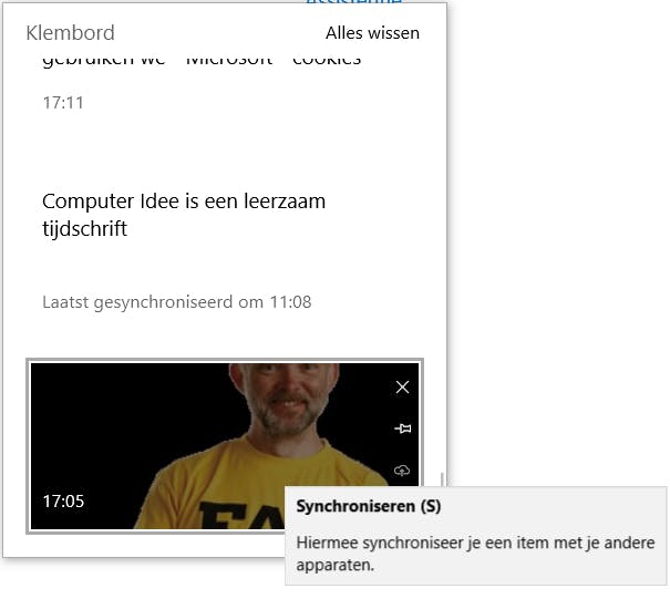 Het nieuwe klembord synchroniseert ook via de cloud. Op die manier kun je - als je bij meerdere Windows 10-pc’s bent aangemeld met hetzelfde account – op al die computers van hetzelfde klembord gebruik maken. En dat kan best handig zijn.