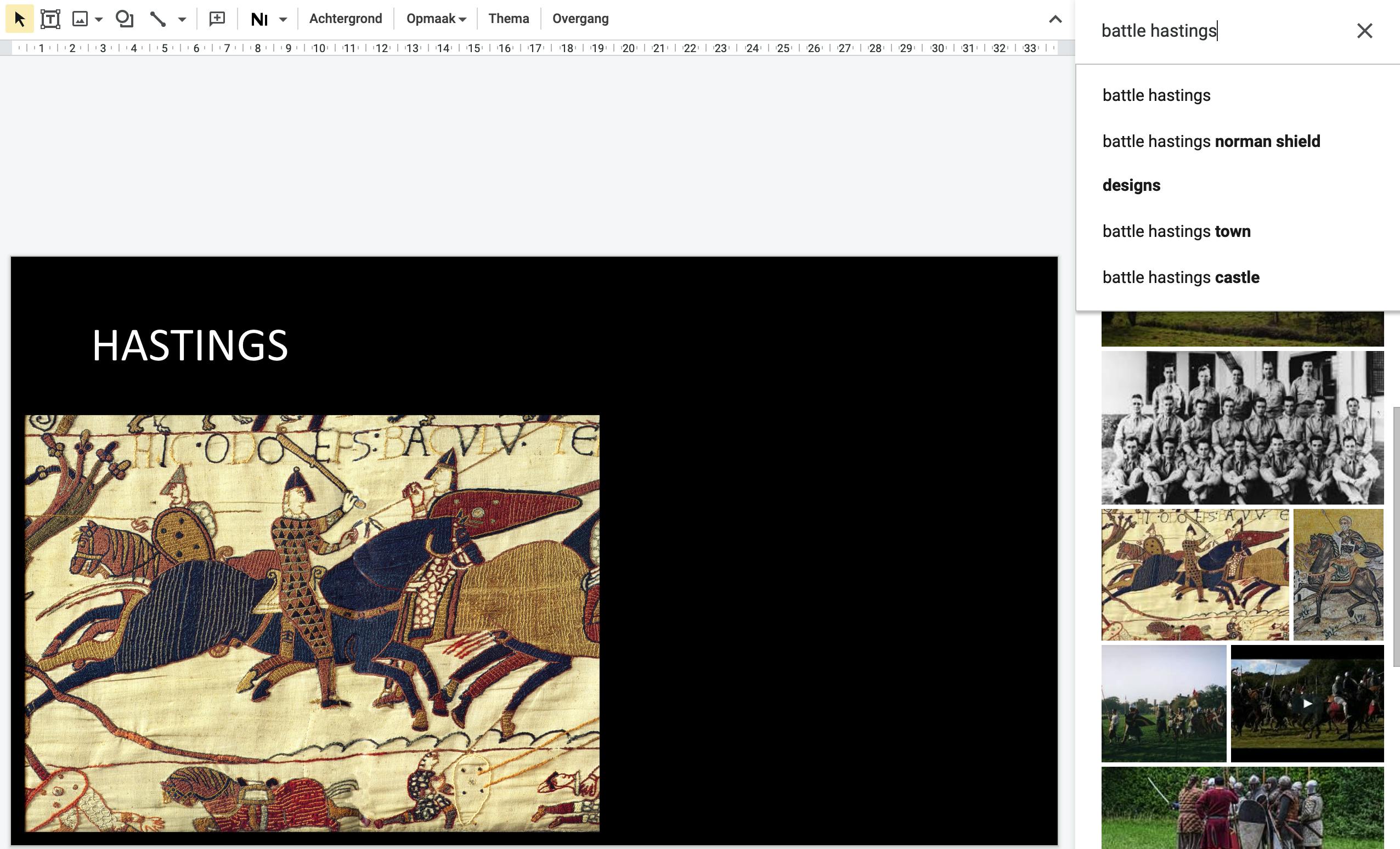 In Google Presentaties is het heel makkelijk om afbeeldingen rechtstreeks van internet in te voegen zonder dat je ze eerst moet downloaden. Bovendien hoef je geen apart tabblad in de browser te openen om de afbeeldingen in de presentatie te plaatsen. Ga naar Invoegen / Afbeelding / Zoeken op het internet. Presentaties opent een paneel aan de rechterkant om de afbeelding te vinden via trefwoorden, zodat je die daarna met één muisklik in de dia kunt plaatsen. Let wel op het auteursrecht: veel afbeeldingen zijn niet zomaar te gebruiken.