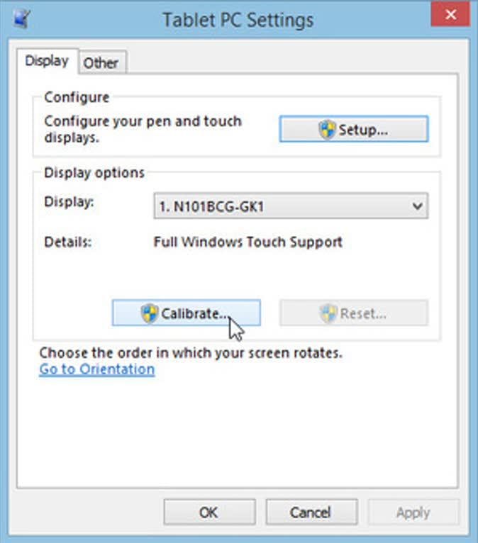 Vet en vuil kunnen de sensoren van het scherm in de war brengen of blokkeren, dus maak het scherm schoon. Als je nog steeds problemen hebt, gebruik dan de Calibration-tool van Windows 8. Ga naar de Search Charm en typ calibrate. Selecteer Calibrate the screen for pen or touch input. Als de Reset-knop niet grijs is, klik erop. Klik anders op Calibrate en kijk of het programma helpt.