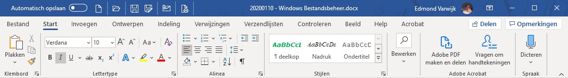 Informatie wordt op de computer bewaard in bestanden. Elk Word-document is een bestand, net als elke digitale foto of video. Maar een bestand is pas echt een bestand wanneer het is opgeslagen, op de computer, op het netwerk (nas) of ergens in de cloud. In Windows 10 heeft elk bestand een extensie, de paar letters achter de punt van de bestandsnaam. Zo bevatten alle Word-documenten uit de extensie .doc of .docx, alle Excel-bestanden .xls of .xlsx en veel foto’s .jpg of .png of .tiff. Dit zijn de bekendste extensies, maar er zijn er nog veel meer, vooral onbekende. Veelal zijn dat systeembestanden waar alleen de computer iets mee kan.