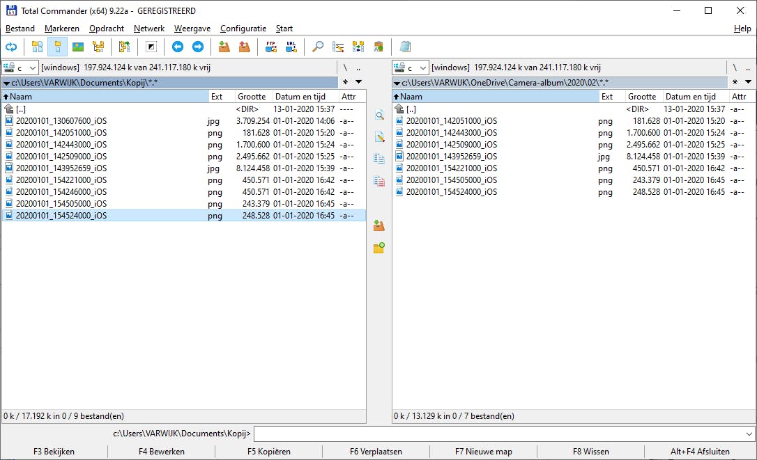 De werking via het toetsenbord van Total Commander en zijn vele navolgers is veelal identiek. Met Alt+F1 wissel je in het linkerdeelvenster van station, met Alt+F2 doe je hetzelfde in het rechterpaneel. Met de pijltjestoetsen blader je door de lijsten met mappen en bestanden en met een druk op de spatiebalk selecteer je er een. Je kunt selecties eindeloos uitbreiden en ook eerder geselecteerde mappen of bestanden eruit halen. Wil je bestanden kopiëren van het ene venster naar het andere, selecteer dan de juiste bestanden en druk op F5 om ze te kopiëren of F6 om ze te verplaatsen. Door met Tab te wisselen tussen de twee panelen, bepaal je de richting van een kopieer- of verplaatsactie. Een bestand bekijken gaat via F3, bewerken met F4.