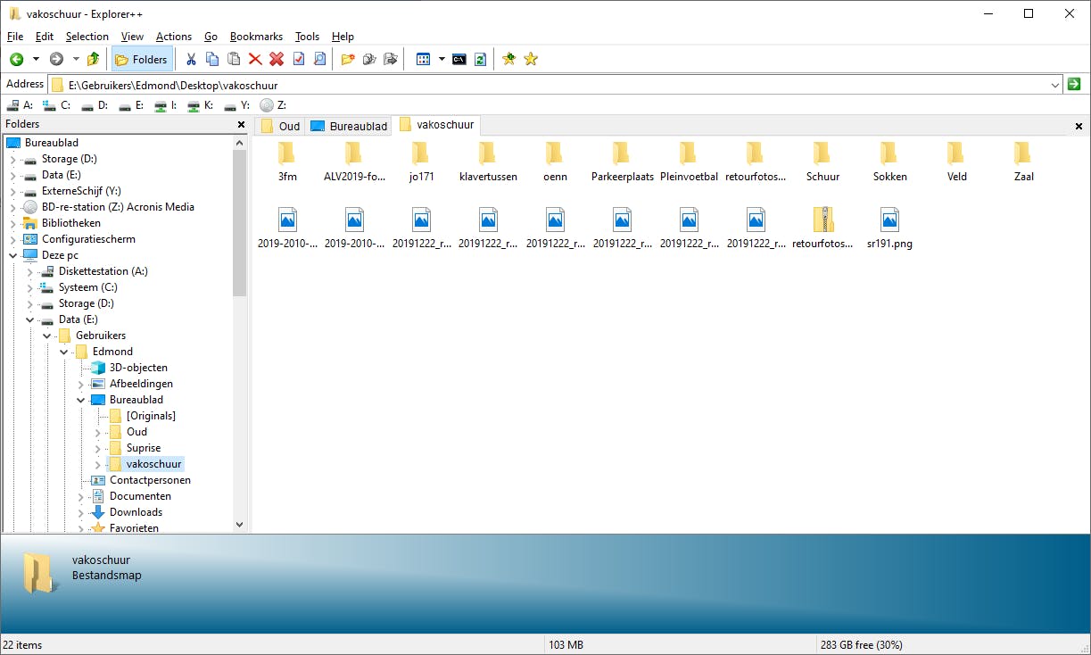 Wat Microsoft niet lukte, lukt anderen wel. Explorer++ is namelijk een versie van de Verkenner met onder meer tabbladen om meerdere locaties met mappen en bestanden tegelijk geopend te hebben. Veel is identiek aan de Windows Verkenner, met bovenin de adresbalk, links de mappenlijst en rechts de bestanden en mappen in de geselecteerde map. Anders dan bij Total Commander wordt bij Explorer++ vooral de muis gebruikt om bestanden te selecteren en tussen twee plekken te kopiëren of een ander bestandsbeheer door te voeren.