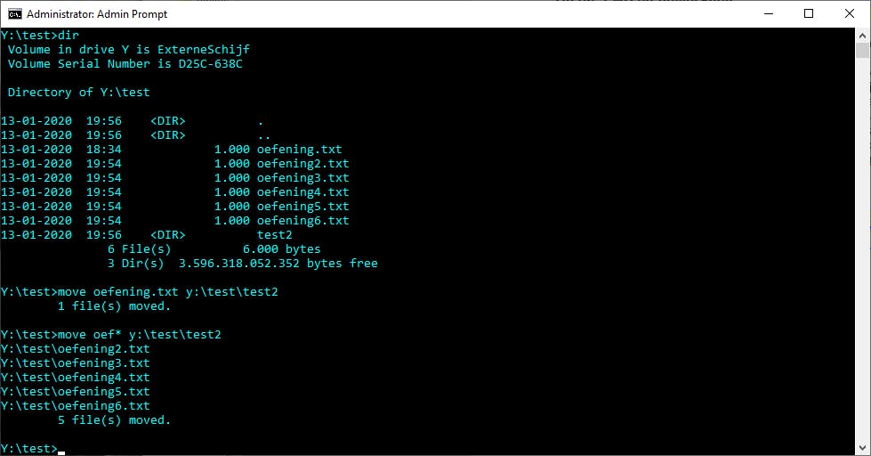De naam van een bestand kun je aanpassen via rename, gevolgd door de oude en de nieuwe bestandsnaam, inclusief de extensie, rename oudenaam.txt nieuwenaam.txt dus. Andere handige opdrachten zijn move, om bestanden te verplaatsen en erase, om bestanden te verwijderen, net als del overigens. Het vraagteken (?) en het sterretje (*) zijn wildcards die je kunt gebruiken om meerdere bestanden in één keer te selecteren.