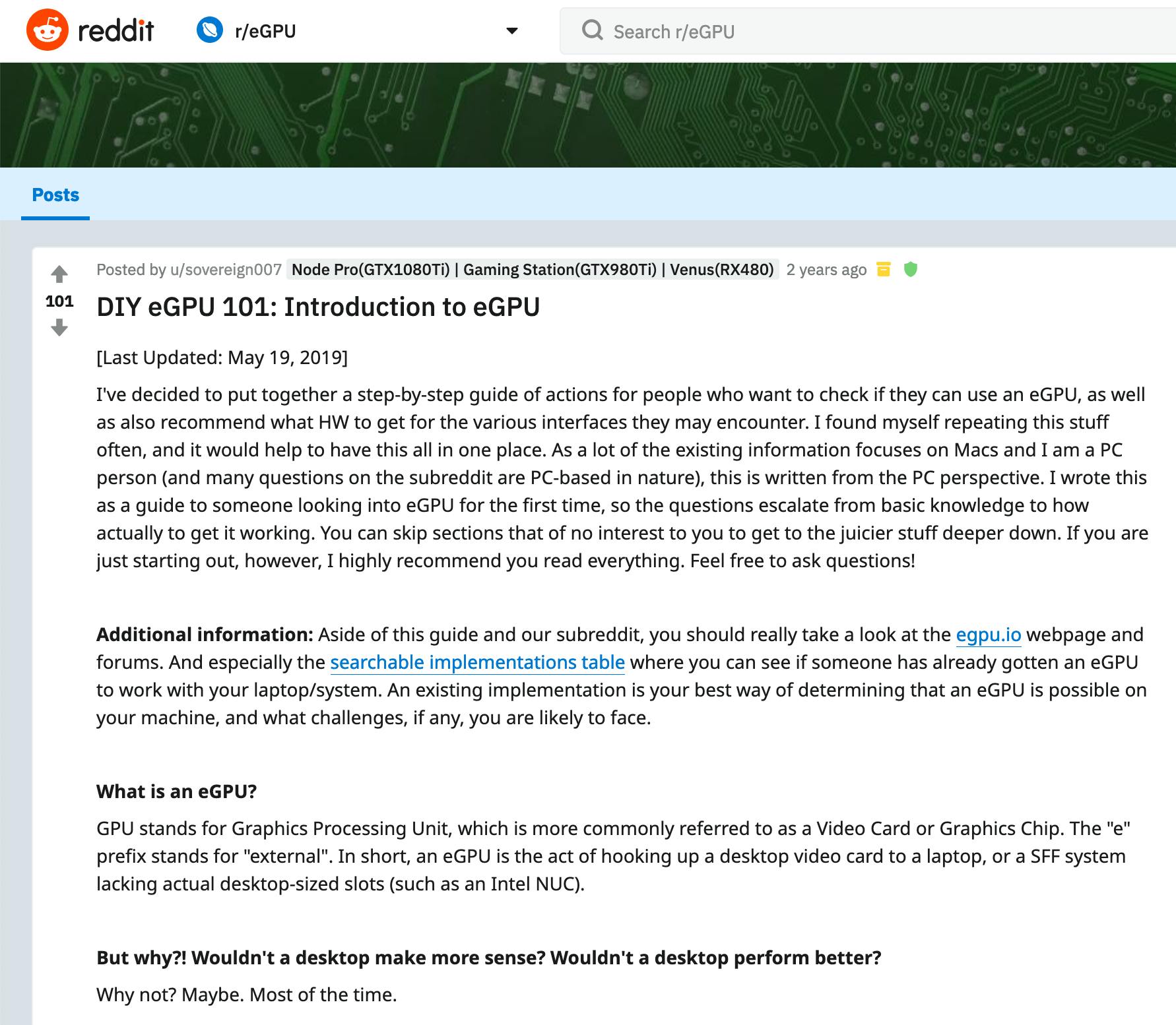 Je laptop heeft waarschijnlijk een lichte gpu (graphics processing unit, ook wel grafische kaart of videokaart genoemd), die niet teveel hitte produceert en voldoende in huis heeft voor het weergeven van video’s, spelen van games en het uitvoeren van alle dagelijkse taken. Maar als je zware programma’s gebruikt, vaak werkt met videobewerkingssoftware, of af en toe meerdere grote beeldschermen aan je systeem aansluit, zul je merken dat je ventilators voortdurend aan staan en je systeem langzamer aanvoelt. Allemaal tekenen dat de interne gpu te zwaar wordt belast. In je desktop-pc kun je in zo’n geval de interne gpu van je systeem upgraden, maar dat gaat doorgaans niet met laptops. Immers, in een desktop-pc kun je gewoon een tweede grafische kaart zetten door hem in een pci-express-sleuf te steken, maar bij een laptop is dit niet mogelijk. Het is wel mogelijk om je laptop (of desktop) te voorzien van een externe gpu. Deze kan de interne gpu uitschakelen of de lasten delen. In de meeste gevallen is een externe gpu zinvol als je een laptop als basissysteem gebruikt.