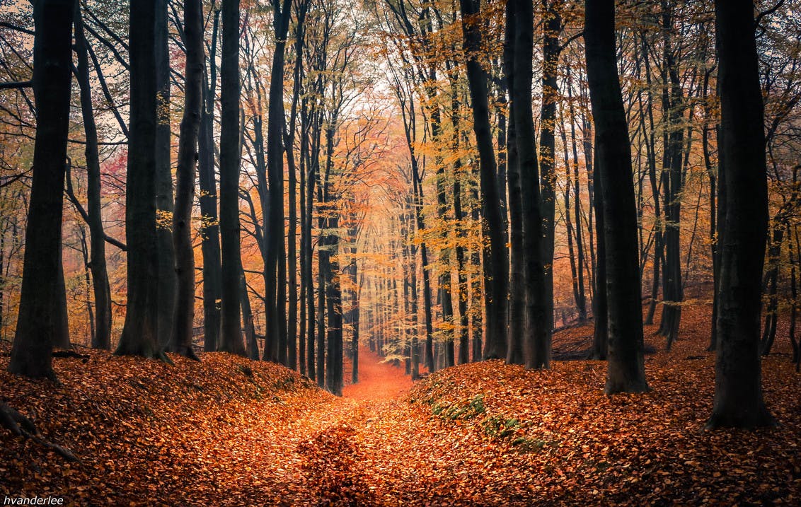 Nog een bos, maar hier is het wél overduidelijk herfst. De kleuren zijn prachtig, de lijnen ook, maar het is vooral het perspectief dat het 'm doet. De herfst kan soms voelen als een lange weg, waar je doorheen moet om naar de rest van het jaar te komen. In deze foto wordt dat gevoel prachtig uitgedrukt.