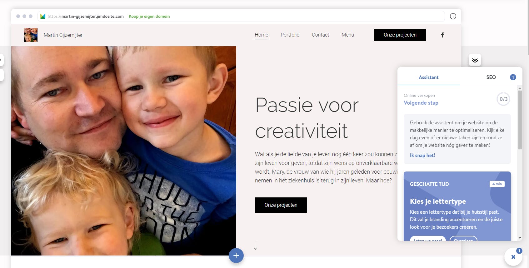 Jimdo is een directe concurrent van Wix, beide partijen bieden een soortgelijke dienst aan en zijn goed met elkaar te vergelijken. Ook op Jimdo maak je eenvoudig en gratis je website. Je meldt je aan of registreert met Facebook en daarna kies je of je een gewone website wilt bouwen of een webwinkel. Het mooie van Jimdo is, dat ze je de keuze bieden tot een website waarin alles voor je is gedaan – en je niets van code hoeft te weten – en een website waarin je zelf zaken kunt veranderen aan de code. Ook mooi is dat Jimdo je laat kiezen tussen het maken van een site voor jezelf/een kleine groep mensen of een site voor iedereen. De koppeling met Facebook en Instagram is bij Jimdo veel groter dan bij WIx, zodat je site direct al veel meer is afgestemd op je wensen. Zo leidt de site van je (eventuele) Facebookpagina af wat voor soort site je probeert te bouwen. De site die Jimdo voor ons bouwde voelde voor ons ook direct meer áf en we werden wat meer aan het handje gehouden bij de configuratie. Ook Jimdo heeft betaalde pakketten, van 9 euro tot 39 euro per maand, waarbij het duurste pakket je onbeperkte opslagcapaciteit geeft.