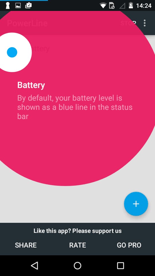 Zodra je PowerLine installeert, ben je altijd op de hoogte van een hoop gegevens over je smartphone. De app geeft aan wat de status van je batterij is, hoeveel wifi- of 4g-signaal je hebt en hoeveel geheugen je Android-toestel nog beschikbaar heeft. De status van je batterij wordt met een blauwe lijn bovenaan je scherm getoond, dit is heerlijk overzichtelijk. Wil je meer gegevens toevoegen, dan tik je op de blauwe knop en krijg je een tweede lijn in een andere kleur op je scherm. Met de gratis versie kun je hooguit twee opties laten tonen.