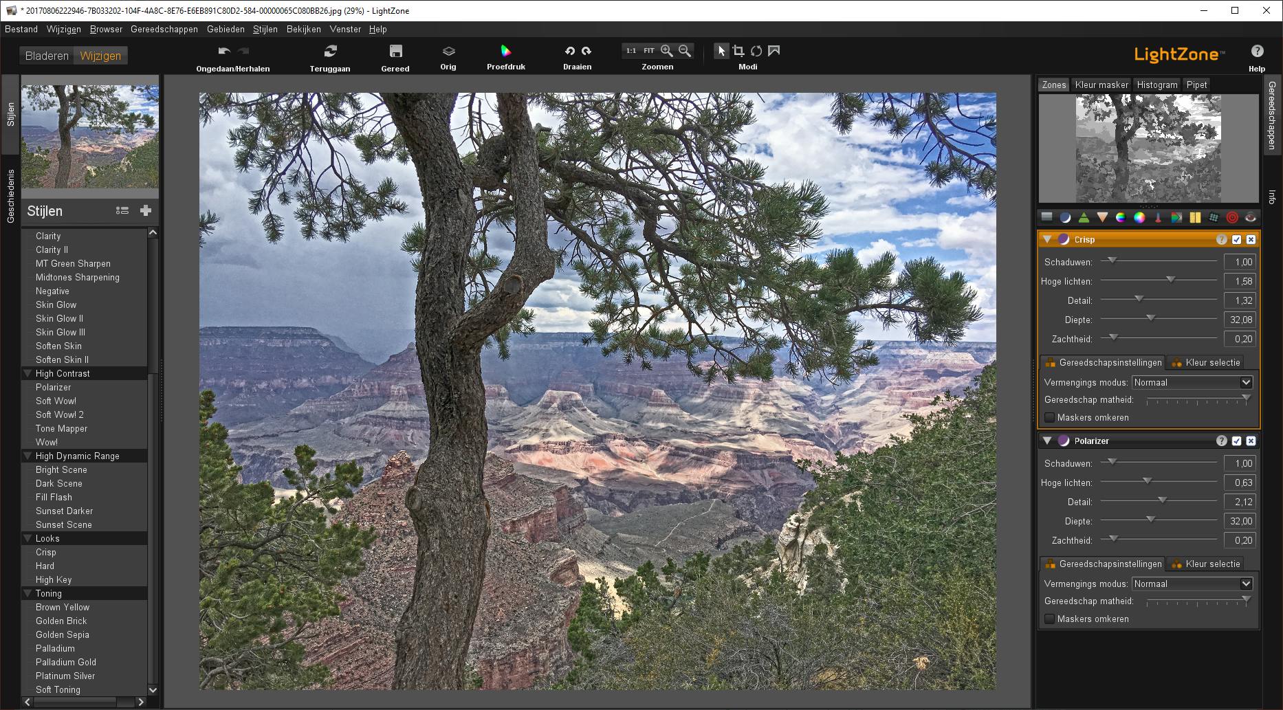 De werkwijze van Lightzone – dat naast heel veel raw-formaten uiteraard ook gewoon je jpeg’je te lijf kan – is zo gemaakt dat een minimum aan theoretische kennis nodig is terwijl de gebruiker toch een maximum aan instellingsmogelijkheden heeft. Lightzone biedt allerlei presets die je naar believen kunt stapelen en helemaal naar je hand kunt zetten. Binnen zo’n stapel bewerkingen kun je willekeurige stappen ongedaan maken, wat uiteraard uitnodigt tot volop experimenteren met dit heerlijke programma.