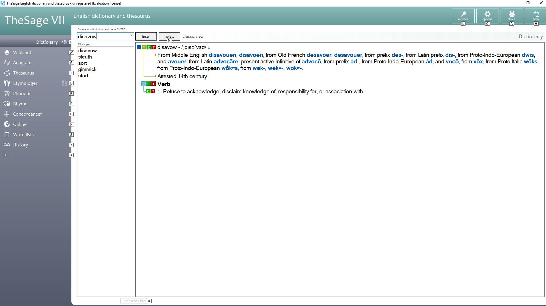 Behalve gewoon zoeken ondersteunt The Sage jokertekens en als het programma het ook niet weet is er altijd nog de ingebouwde online-zoekfunctie voor onder andere Wiktionary.
