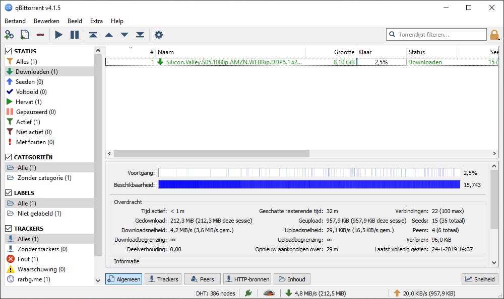 Met qBittorrent kun je eenvoudig gedownloade torrent-bestanden inlezen om vervolgens de bijbehorende download binnen te harken. Het kan echter ook via nog handiger ‘magnet links’ die op veel torrent-sites te vinden zijn. Tijdens het downloaden kun je precies zien welke onderdelen al geheel binnen zijn en heb je volledige controle over het downloadproces. Zo kun je taken pauzeren of de snelheid ervan begrenzen. Ook kun je bij gelijktijdige downloads prioriteiten aanpassen.