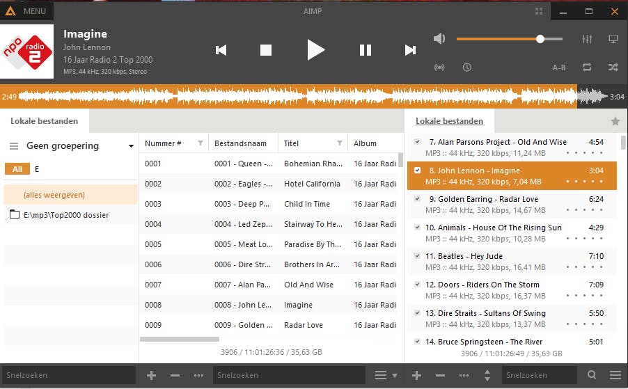 Het hiervoor besproken Song Director is een uitstekend programma om grote muziekverzamelingen te beheren maar als het op afspelen aankomt is het wel een zeer sober geheel. Windows eigen muziekspeler oogt nog smeuïger. Maar ook die haalt het niet bij AIMP.