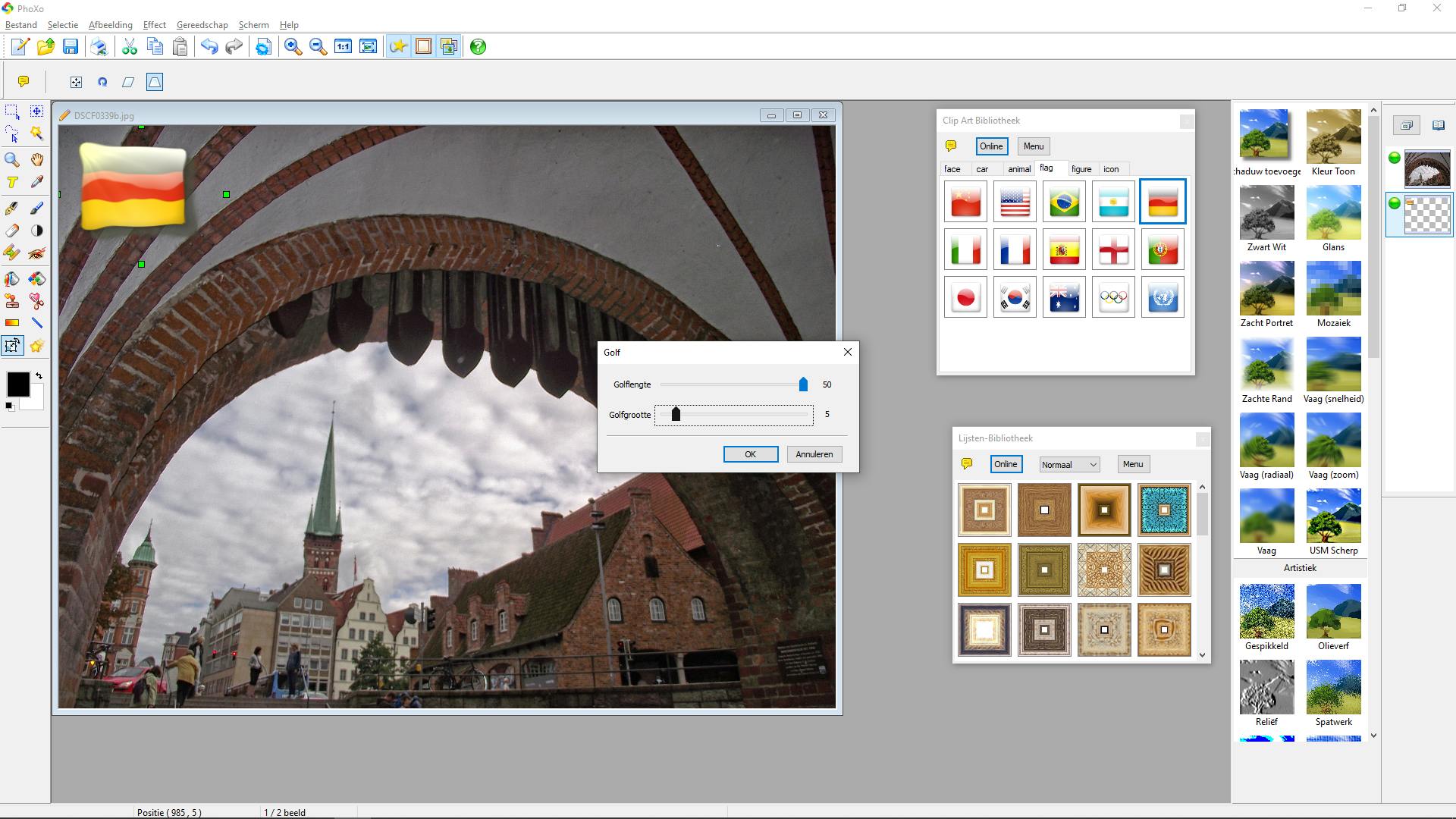 Met een eenvoudige fotobewerker kun je vaak alleen de technische aspecten van foto’s aanpassen en nog wat tekst toevoegen. Wil je meer, dan moet je al snel een zwaardere fotobewerker of speciaal ontwerpprogramma hebben. Er is echter een klein en handzaam programmaatje waarmee de gemiddelde hobby-ontwerper een heel eind komt, en dat moois heet PhoXo. PhoXo biedt uiteraard al het nodige gereedschap om foto’s van de perfecte helderheid, kleurbalans en contrast te voorzien en er creatieve filters op los te laten. Daarnaast is er echter een uitgebreide bibliotheek met clip-art en lijsten die je – elk op een eigen laag – aan je ontwerp kunt toevoegen. Ook tekst voeg je op een eigen laag toe en vervolgens kun je op al die lagen allerlei effecten loslaten.