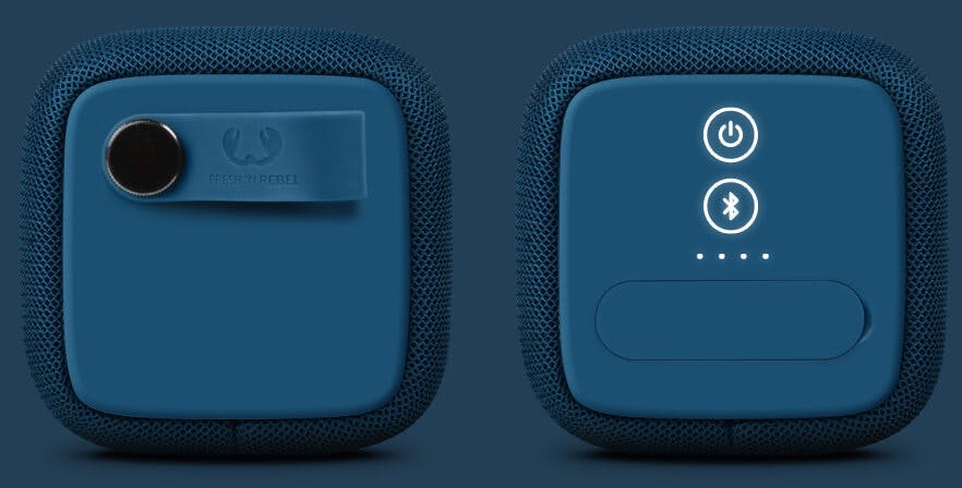 De Rockbox Bold L is binnen dit deelnemersveld de enige bluetoothspeaker die voor iets meer dan honderd euro over de toonbank gaat. Met een gewicht van ruim een kilo betreft het dan ook een behoorlijk zwaarlijvig exemplaar, al richt Fresh ’n Rebel zich evengoed op de mobiele luisteraar. De waterdichte behuizing heeft namelijk een accu met een speeltijd van ongeveer vijftien uur en een rubberen draagriem. Bovenop bevat het apparaat voor de bediening vijf drukknoppen, terwijl de aan-uit- en bluetoothknop zich aan de zijkant bevinden. Achter een stevig rubberen klepje zien we verder nog een 3,5mm-geluidsingang, oplaadpoort en usb-aansluiting. Via laatstgenoemde aansluiting laad je mobiele apparaten zo nodig onderweg op, dus de speaker doet ook dienst als powerbank.