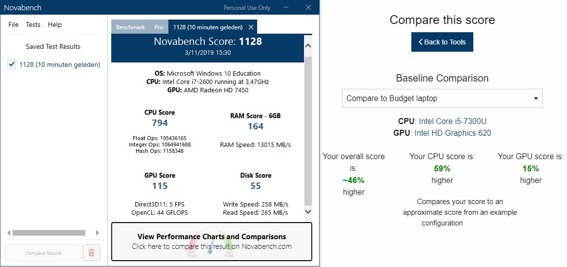 Bepaal je liever zelf welke onderdelen je wil testen, probeer dan de tool Novabench (beschikbaar voor macOS, Linux en Windows 64 bit). Hier kun je wel zelf beslissen of je de testresultaten naar de Novabench-servers wil uploaden of niet. Houd wel rekening met enkele beperkingen in de gratis versie: er zijn bijvoorbeeld geen testscripts of ingeplande tests mogelijk.