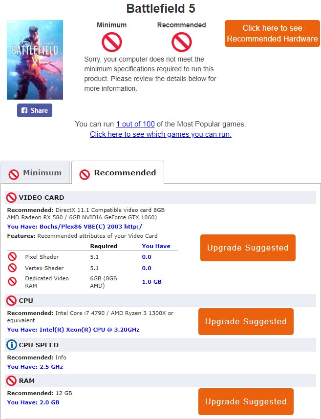 Heb je een specifiek game op het oog, maar twijfel je of je systeem het wel aan kan? Dat kun je heel gemakkelijk testen met Can You Run It. Je selecteert de gewenste game, waarna je op Can You Run It klikt. Accepteer de bijhorende download en voer de tool uit zodat je hardware-specificaties worden gecontroleerd. Daarna laat de tool je op de website zien of je systeem aan de vereisten van de game voldoet via de diverse componenten zoals gpu, cpu, ram en os. Daarnaast ontdek je via de link Click here to see which games you can run hoeveel van de ongeveer 6000 games uit de database voldoen aan zowel de minimale als de aanbevolen systeemvereisten.