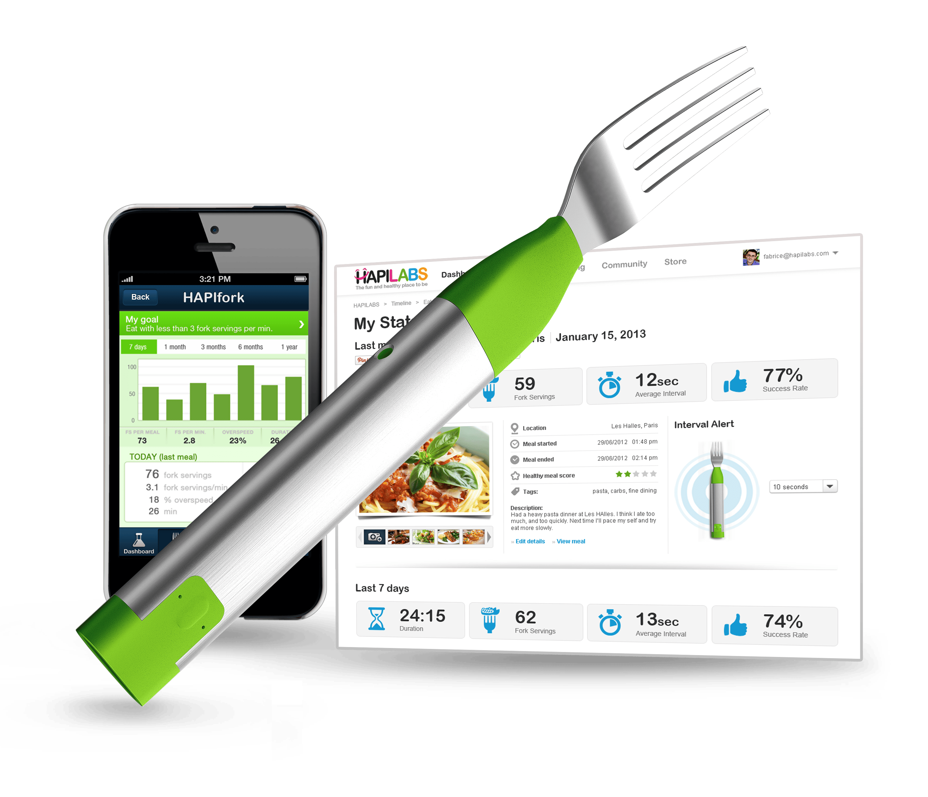 Briljant natuurlijk deze naam … maar de enige functie die deze vork heeft is bijhouden hoe snel je eet en je met behulp van vibraties corrigeren. Dit heeft als doel dat je het voedsel wat langzamer consumeert en dus beter kauwt. Op zich zien we daar heel erg het nut van in, te snel eten en slecht kauwen is een belangrijke oorzaak van overgewicht, en dat is natuurlijk wel een probleem waar veel mensen mee te maken hebben. Echter, wij kennen een heel slim iets dat je deze gewoonten veel goedkoper bijbrengt: je moeder!