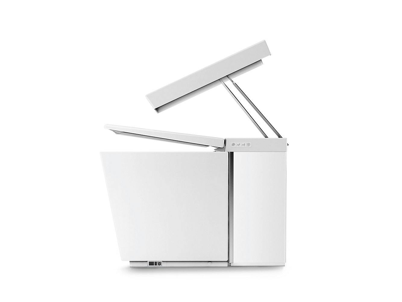 Het kon natuurlijk niet uitblijven. We kunnen slim winkelen, slim voedsel bereiden, dus dan moeten we dat voedsel ook slim uit ons lijf kunnen dumpen. Jawel, slimme toiletten, ze bestaan. Niet alleen vinden we dit product belachelijk omdat de fabrikant een foto op z’n website heeft staan waarin het toilet midden in de huiskamer (!) staat, maar vooral ook vanwege de belachelijke features. Bewegingsdetectie zodat de bril automatisch opent, wc-bril-verwarming, een ingebouwd bidet, de kontdroger 2000 (oftewel een ingebouwde föhn), een luchtverfrisser, ingebouwde luidsprekers (waar, hoe kunnen we deze grap niet maken, alleen maar schijtmuziek uit klinkt) en voetenverwarming. De makers kunnen wat ons betreft de pot op!