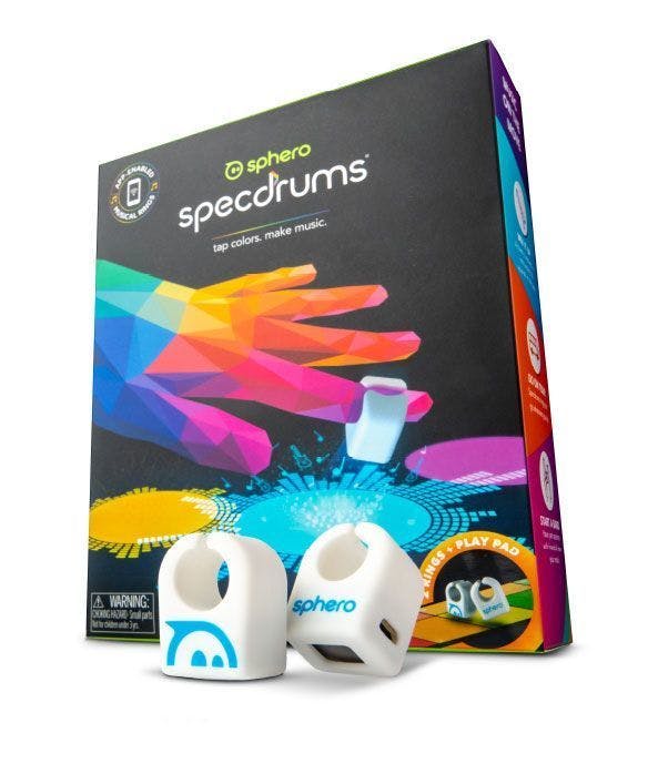 Met de Specdrums tover je kleuren om in geluid. Je doet een ring om je vinger en tikt op een stuk fruit, een tafelblad of een ander willekeurig voorwerp. De bijbehorende app maakt van je getik een muzikaal geheel. In de verpakking vind je twee ringen, zodat je ook complexere ritmes en melodieën kunt maken. Met de app kun je ook je eigen samples opnemen die je vervolgens met de ringen kunt bespelen.