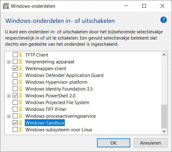 Iedereen die wel eens aan de slag is geweest met virtuele machines, weet dat het best wel lastig is om een afwegende balans te maken tussen het beschikbare geheugen, schijfruimte en processorkracht voor de eigenlijke Windows 10-computer en de virtuele omgeving. Bovendien heb je voor virtualisatie ook extra software nodig, zoals VirtualBox of VMWare. Vanaf de nieuwe update komt Microsoft (weer) met zijn eigen virtuele testomgeving: Windows Sandbox. Helemaal nieuw is dat niet, want nu al kunnen eigenaren van Windows 10 Pro aan de slag met het ingebouwde virtuele platform Hyper-V. Het ‘probleem’ is dat Hyper-V vooral gericht is op professionals en IT-techneuten, maar minder geschikt is voor de gewone Windows-gebruiker die af en toe software binnenin een veilige zandbakomgeving wil testen. Wat maakt Windows Sandbox dan anders? Allereerst bevat de Windows Sandbox alleen een virtuele Windows 10-versie, je kunt er dus geen ander besturingssysteem in installeren. De machine is (nadat je ‘m hebt geïnstalleerd) direct klaar voor gebruik. Het enige dat je hoeft te doen, is de Sandbox te starten en na enkele seconden heb je direct een werkende virtuele Windows 10. De versie van Windows 10 in de Sandbox is gelijk aan je eigen Windows 10. Dus heb je een 32-bits-Pro-versie, dan vind je die ook virtueel terug. De virtuele computer wordt kaal opgeleverd, software die je in je eigen Windows-systeem hebt geïnstalleerd, staan dus niet in de virtuele machine.