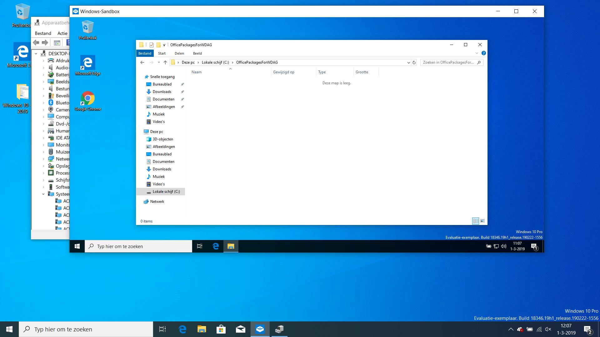 En bij het afsluiten van de virtuele machine wordt er niks bewaard: sluit je de virtuele machine af, en start je ‘m weer opnieuw op, dan heb je weer een schone virtuele Windows 10. Kortom, de omgeving is puur bedoeld voor het (tijdelijk) testen van applicaties, of wanneer je in een veilige omgeving wilt experimenteren met dubieuze software of het bezoeken van ‘gevaarlijke’ websites. De virtuele machine is compleet beschermt en staat niet in verbinding met je eigen Windows-computer.