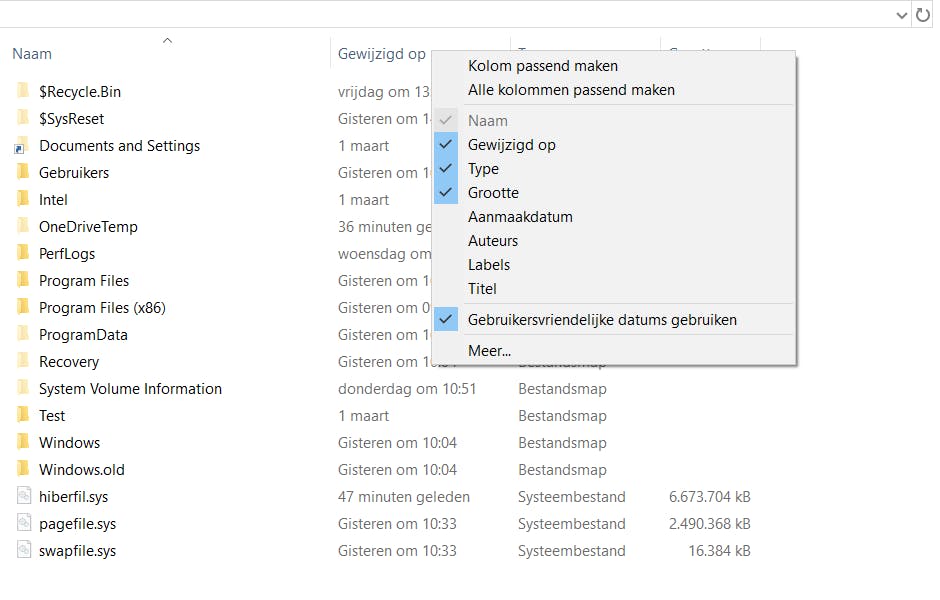 De Windows Verkenner is sinds Windows 95 eigenlijk nauwelijks veranderd en ook in de nieuwste versie van Windows 10 vinden we nagenoeg geen wijzigingen. De enige opvallende verandering is de manier waarop je nu datums in de bestandsweergave kunt laten weergeven. In de vorige Windows-versies zag je alleen de gewijzigde datumnotatie in getallen, in de nieuwe update kun je kiezen voor een gebruiksvriendelijke datumweergave. In plaats van 11-03-2019 staat er dan bijvoorbeeld ’47 minuten geleden gewijzigd’ of ‘Gisteren om 11:03’. Via een rechtsklik op de kolom ‘Gewijzigd op’ kun je het vinkje bij de optie Gebruiksvriendelijke data gebruiken weghalen, de datumnotatie wordt dan weer volgende de oude weergave getoond.