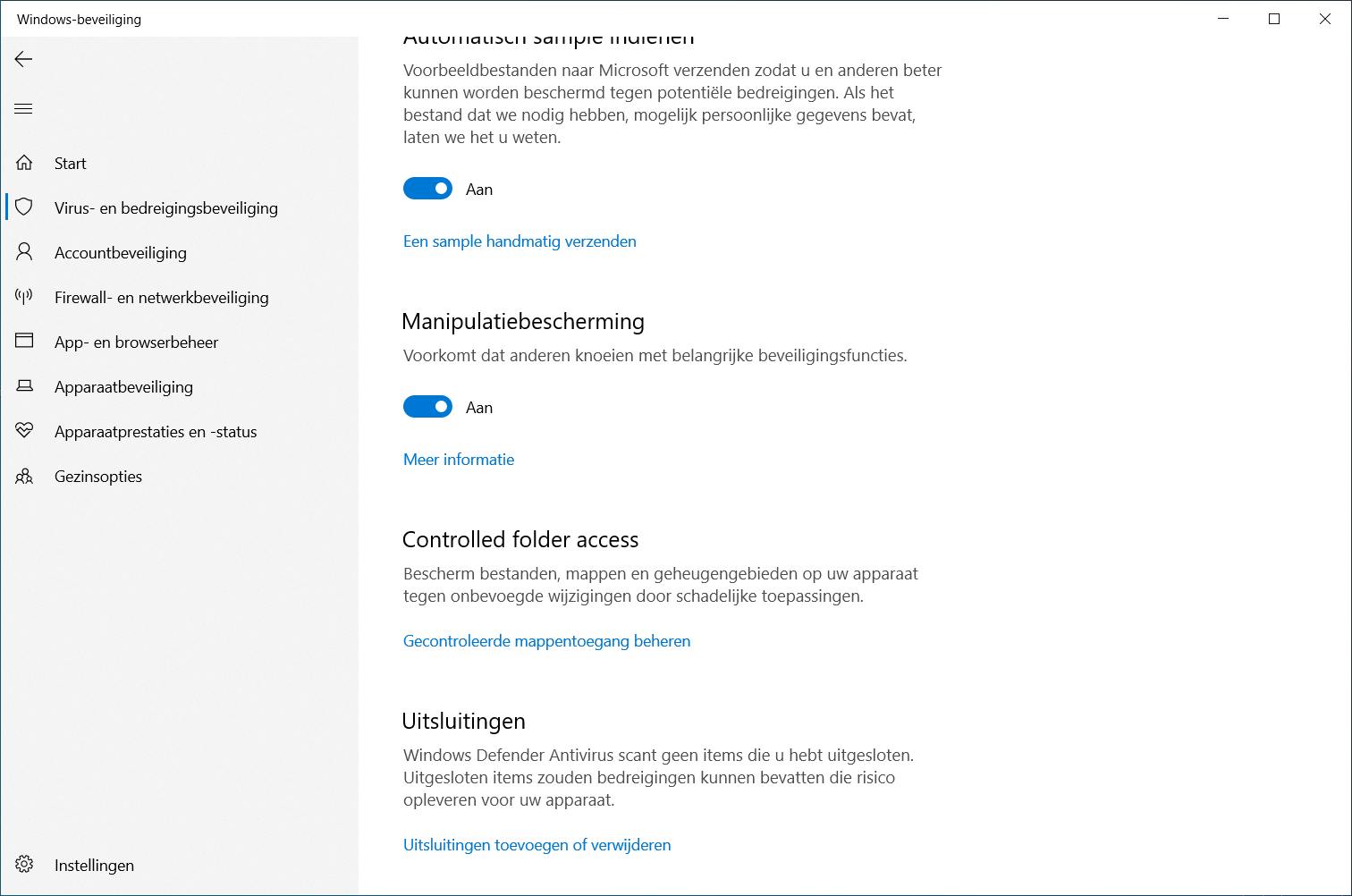 Een nieuw onderdeel van de ingebouwde beveiligingstool Defender is de zogeheten Manipulatiebescherming. Volgens de beschrijving bij deze instelling voorkomt deze functie dat anderen knoeien met belangrijke beveiligingsfuncties. Oftewel, de beveiliging kunnen uitschakelen zonder dat je dat zelf merkt. Bij nader onderzoek blijkt dat deze functie controleert of Windows Defender niet van buitenaf wordt uitgeschakeld, bijvoorbeeld via een PowerShell-script. Zodra een hacker of een script probeert de beveiligingsinstellingen uit te schakelen, geeft deze manipulatiebescherming geen status terug aan de uitvoerder van het script, waardoor het lijkt alsof het uitschakelen is gelukt, terwijl dat in feite niet zo is. De manipulatiebescherming voorkomt overigens niet dat een tweede gebruiker van een computer de beveiligingsinstelling kan uitschakelen, maar is dus puur bedoeld voor achtergrondtaken die dat wel proberen.