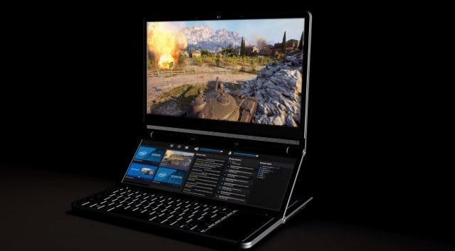 Intel lijkt de concurrentie aan te willen gaan met Asus, want het bedrijf kondigde zijn eigen laptop met twee schermen aan, voorlopig genaamd Honeycomb Glacier. Naast een Full HD-scherm van 15,6 inch krijg je er een tweede scherm bij van 12,3 inch met een resolutie van 1920 bij 720. De twee schermen zijn boven elkaar geplaatst, waardoor je in principe een hoge laptop krijgt. Het tweede scherm van de Honeycomb Glacier is in tegenstelling tot de Zenbook Pro Duo niet plat boven het toetsenbord geplaatst, maar kun je schuin uitklappen. Hierdoor vervult het tweede scherm de functie van een laptopstandaard, die je dus niet meer nodig hebt. Handig!