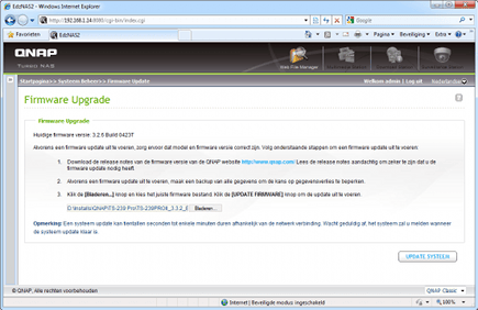 Selecteer de gedownloade nieuwe firmware en laat de NAS deze daarna uploaden en installeren.