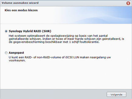 Synology kent sinds firmware DSM2.3 een slimme RAID-vorm die zelf altijd de beste indeling van het volume kiest.