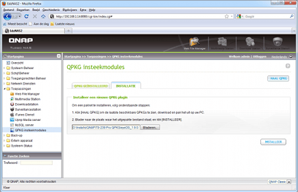 Een leuke optie van veel NAS-apparaten is de mogelijkheid extra functionaliteit toe te voegen via een zogenaamde ValueApp (Synology) of QPKG (QNAP), of nog weer een andere naam bij een van de andere leveranciers. Kijk op de website van de makers van de NAS of zij dergelijke programma's en uitbreidingen bieden. Selecteer een uitbreiding en let opnieuw goed op dat deze compatibel is met het model NAS dat u hebt. Download het daarna naar uw computer. Als het een zip-bestand is, open het dan en bewaar de inhoud op de pc. Log via de webbrowser in op de NAS en kies voor Toepassingen, QPKG Insteekmodules (QNAP) of Systeem, Pakket beheer (Synology). Klik dan op Installatie en blader naar de package die u naar de computer hebt gedownload. Selecteer de package en bevestig via OK en Installeer. Volg daarna de stappen van de wizard.