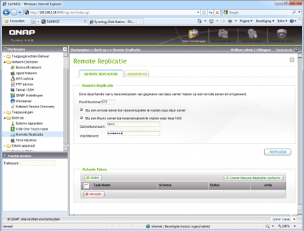 De makkelijkste methode om te migreren is de oude en nieuwe NAS naast elkaar in het netwerk hangen en configureren voor een netwerkback-up. Maak een netwerkback-up van de oude NAS naar de nieuwe en schakel dan de oude uit. Verplaats met de Verkenner of via een soort FileStation alle bestanden uit de netwerkback-upmap op de nieuwe NAS naar de juiste mappen. Gebruik dan een week de nieuwe NAS en laat de oude uitgeschakeld. Pas wanneer u in die week niet hebt gemerkt dat er gegevens missen of kapot zijn gegaan bij het verhuizen, kunt u de oude NAS wegdoen. Op de nieuwe NAS zoekt u voor deze methode bij Back-up naar de Netwerk back-upservice en kiest voor Inschakelen. Op een QNAP NAS heet dit Remote Replicatie en het zit eveneens onder Back-up. Schakel beide opties in en geef een wachtwoord voor de service. Klik dan op Toepassen. Log nu in op de oude NAS, klik op Back-up en kies voor het aanmaken van een taak. Selecteer bij de bestemming de netwerkback-up en doorloop de volgende stappen van de wizard. Klik uiteindelijk op OK en start de back-up. Als deze klaar is, logt u in op de nieuwe NAS en via de webexplorer kijkt u of alle bestanden die bij de back-up horen netjes zijn overgezet. Schakel daarna zoals gezegd voor minimaal een week de oude NAS uit.