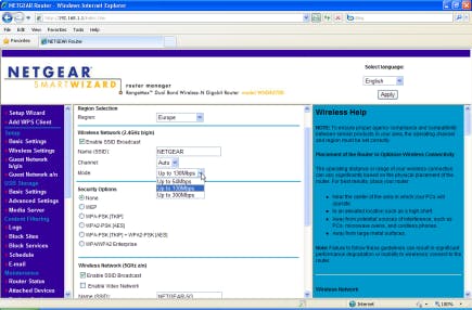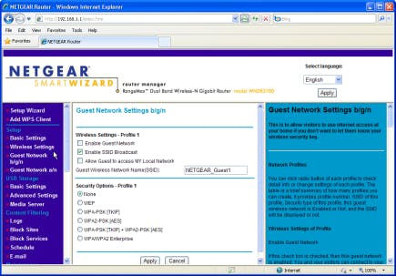 In de webinterface kan de router tot in details worden geconfigureerd. Zo kunnen de beide radiozenders los van elkaar geconfigureerd worden: het is mogelijk aan het deel dat op 5 GHz zendt een andere naam toe te kennen dan aan het radiodeel dat op 2,4 GHz werkt. Aangesloten computers kunnen dan eenvoudig zien op welke frequentie ze communiceren, omdat de beide radio’s verschillende namen hebben. Als extra functie kan de Netgear een gastnetwerk aanmaken, zodat u internet kunt aanbieden aan buren of gasten zonder dat uw eigen netwerk toegankelijk wordt gemaakt.