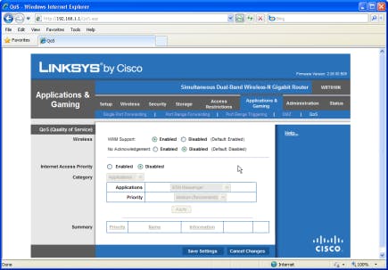 De router van Linksys kent Quality of Service, maar er is niet veel in te stellen.