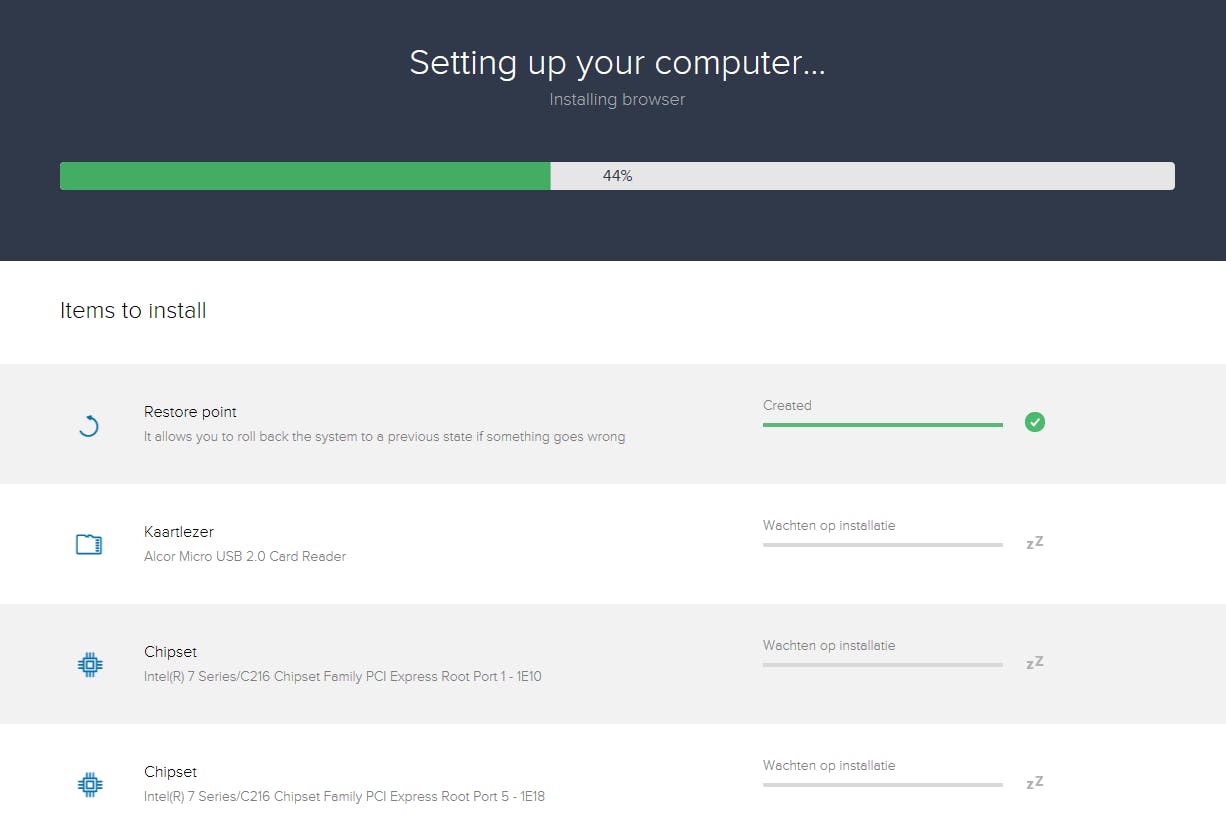 DriverPack installeert stuurprogramma’s voor alle hardware in (en aan) je pc, en houdt deze daarna up-to-date. De kracht van dit programma is ook direct het onderdeel waarvoor we een beetje huiverig zijn. Het programma vraagt weinig en doet vooral. Dat is ideaal, maar natuurlijk ook best tricky. Er valt weinig te configureren voor je begint en zodra je het programma toestemming geeft om stuurprogramma’s te installeren, wordt er flink huisgehouden op je pc. Zelfs de stuurprogramma’s van je grafische kaart worden vervangen. Er wordt weliswaar een systeemherstelpunt aangemaakt voor je begint, maar een tikje heftig is het wel, je geeft zo’n programma veel controle.