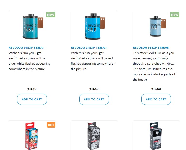Voor het maken van analoge foto’s heb je filmrolletjes nodig. De originele LC-A maakte gebruik van 35mm-film, voor de moderne LC-A en de Diana F+ heb je zoheten 120 film nodig. De LC-A+ maakt echter gebruik van 35mm-film. Filmrolletjes bestel je via de webshop, maar kun je natuurlijk ook in elke fotospeciaalzaak kopen. Er zijn rolletjes beschikbaar die speciaal voor lomo-camera’s zijn gemaakt. De Revelog 24EXP Tesla zorgt er bijvoorbeeld voor dat er willekeurige blauwe en witte vlekjes op je foto terechtkomen. Je kunt zwart-witrolletjes kopen, rolletjes die een bepaalde textuur aan je foto’s toevoegen en rolletjes die kleuren intensiever maken of juist het contrast verminderen. Welk soort film bij jou past, is erg persoonlijk. Een kwestie van experimenteren dus! Elke camera levert in combinatie met een bepaald rolletje ook weer compleet andere resultaten.
