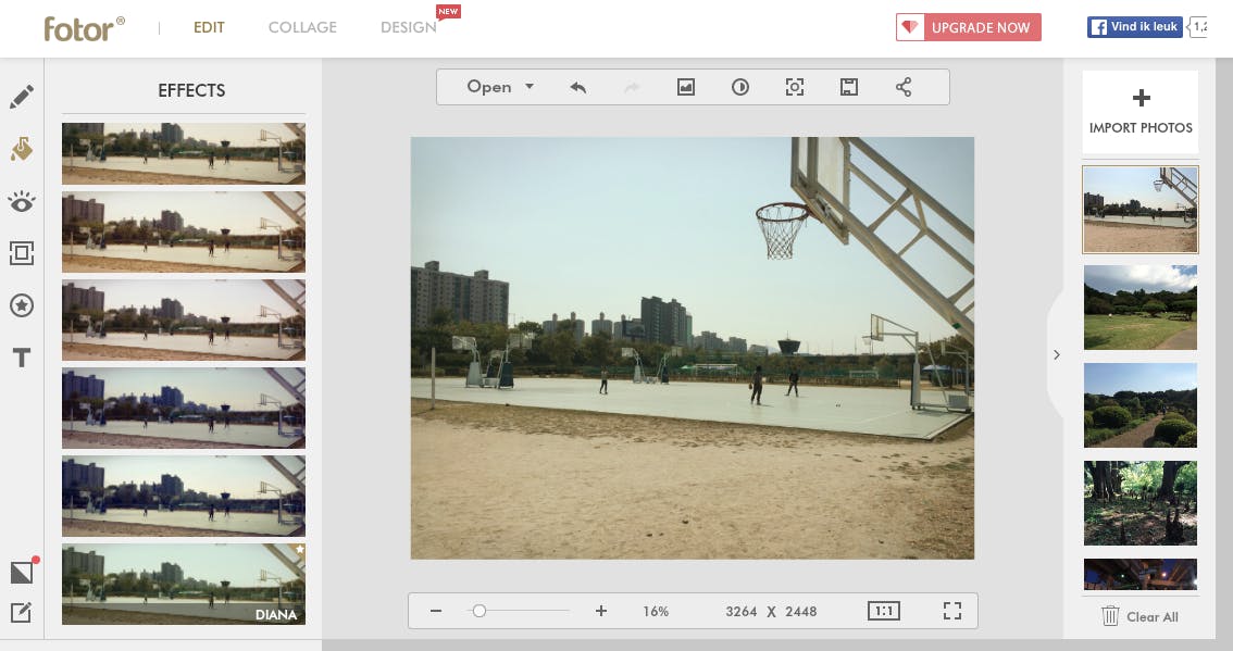 Wil je een lomo-effect op je bestaande foto toepassen, ga dan naar www.fotor.com en klik op Edit. De editor wordt nu geopend. Klik op Import Photos en kies de foto’s die je wilt importeren. De online editor heeft een beperking van 8 megapixels. Als je foto’s een hogere resolutie hebben, dan geeft de editor dit aan en comprimeert het de foto’s automatisch. Met de desktop-versie van Fotor heb je deze limiet niet. Ga naar www.fotor.com/windows of www.fotor.com/mac om het programma gratis te downloaden. Terug naar de online editor. Links klik je op Effects en kies je voor de optie Lomo. Je vindt zeven verschillende filters voor je foto’s. Kies bijvoorbeeld voor Diana en je ziet dat de hoeken iets donkerder worden, het contrast wordt verhoogd en de kleuren intensiever worden. Met de online editor kun je nog veel meer dingen aanpassen: kijk ook eens bij Basic Edits om de foto te snijden of om het contrast aan te passen. Je slaat een foto op door bovenin op Save te klikken. Onder Quality kies je Highest en klik op Save to my computer.