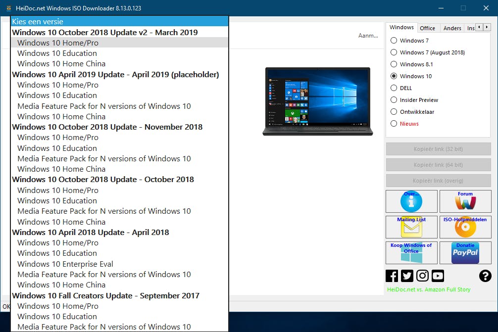 Daarvoor hebben we wel een installatiemedium van Windows nodig. Heb je geen installatie-dvd of opstartbare usb-stick voorhanden, dan moet je eerst zelf zo’n medium aanmaken. Allereerst haal je een iso-schijfkopiebestand met de gewenste Windows-versie op. Voor de actuele versie van Windows 10 verwijzen we naar de volgende stap (zie ‘02 Installatiestick’); voor oudere Windows-versies kun je handig gebruikmaken van de gratis Microsoft Windows and Office ISO Tool. Open hier het tabblad Windows en selecteer de gewenste versie (7, 8.1 of 10), systeemtype (32 of 64 bit) en taal. Bevestig je keuzes en haal het bijhorende iso-bestand op.