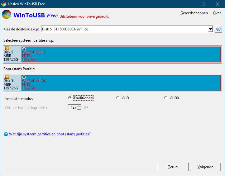 Lukt het je om een of andere reden niet om een Windows To Go-medium met Rufus te creëren dan kun je het nog met WinToUSB proberen. Met deze tool kun je Windows ook op een verwijderbare usb-schijf plaatsen. Met de knop Physiek naar USB (inderdaad, geen correct Nederlands) is het bovendien mogelijk om je reeds geïnstalleerde Windows-versie portable te maken. Met de gratis editie blijkt het echter niet mogelijk om Windows 10 1809 of hoger ‘draagbaar’ te maken en ook een MBR-indeling kiezen die zowel op bios als uefi hoort te werken, zit er in deze editie blijkbaar niet bij. Vergelijkbare mogelijkheden vind je nog in AOMEI Partition Assistant, via het menu All Tools / Windows(7/8/10) toGo Maker. Helaas blijkt deze functie voorbehouden aan de commerciële Professional-editie (circa 50 dollar).