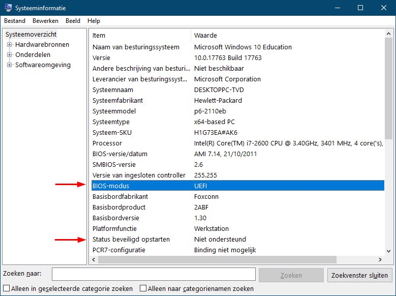 Je doet er dus verstandig aan de bootmodus van je Windows-installatie eerst te controleren voor je er een tweede OS op zet. Start Windows op, druk op Windows+R en voer de opdracht msinfo32 uit. Bij Systeemoverzicht merk je het item BIOS-modus op. Staat hier UEFI, dan start Windows daadwerkelijk in uefi-bootmodus op. In het andere geval staat hier Verouderd of Legacy.
