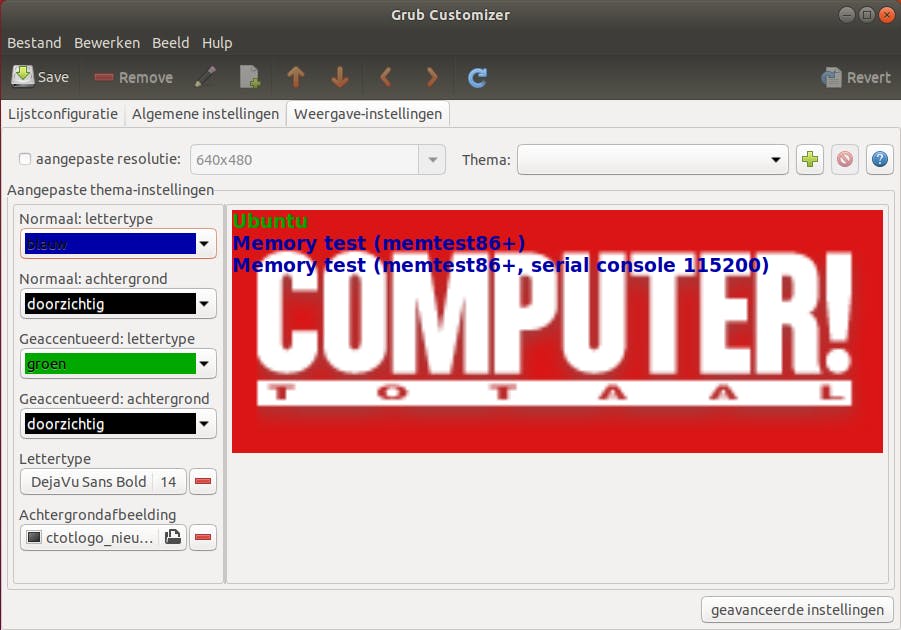 Standaard start het Grub-bootmenu na 10 seconden door met Ubuntu. Heb je liever dat Windows 10 automatisch doorstart of verkies je een andere wachttijd, dan kun je dat weliswaar vanuit een terminal-venster regelen, maar de tool Grub Customizer werkt veel makkelijker. Je moet dit pakket dan wel eerst even installeren. Open een Terminal-venster en voer achtereenvolgens de volgende opdrachten uit: sudo add-apt-repository ppa:danielrichter2007/grub-customizer sudo apt update sudo apt install grub-customizer Bevestig met J , waarna je de tool bij Show applications terugvindt in de Ubuntu-desktop. Start de applicatie op en ga naar het tabblad Lijstconfiguratie. Via de pijltoetsen verplaats je items naar boven of onderen. Op het tabblad Algemene instellingen pas je de wachttijd aan en bij Weergave-instellingen kun je onder meer lettertype en -kleuren wijzigen, maar ook een eigen afbeelding uploaden die als achtergrond moet fungeren voor je Grub-bootmenu.