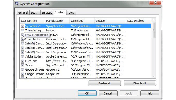 In Windows XP, Vista of 7, klik op Start (in XP is dat Start > Run), typ msconfig, en druk op ENTER. Zodra System Configuration tevoorschijn komt, klik op het tabblad Startup. Je kunt items uitschakelen door het vinkje dat er bij staat weg te halen.