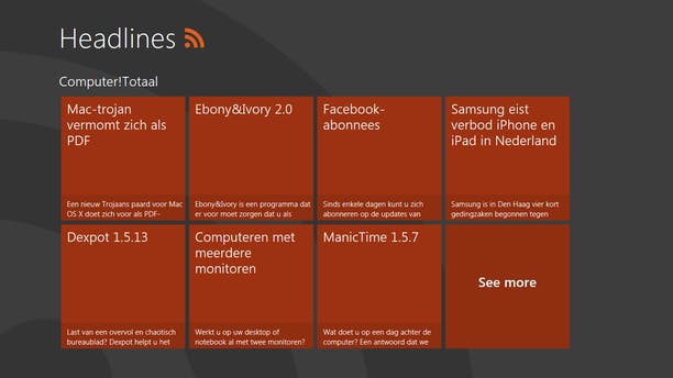 Wanneer u het installatieproces hebt doorlopen en Windows 8 start, wordt u meteen geconfronteerd met de opvallendste nieuwtjes van het besturingssysteem. U kunt namelijk niet alleen aanmelden met een lokaal geïnstalleerd account, maar ook met een Windows Live ID. Een voordeel van de laatste optie is dat u overal op alle Windows 8-systemen (waar deze functie ingeschakeld is) kunt aanmelden, en bovendien uw instellingen behoudt. Handig, hoewel dit natuurlijk wel een internetverbinding vereist bij het aanmelden. Eenmaal aangemeld (met een lokaal account of uw Live ID) komt u in een scherm terecht dat niet eerder in Windows te zien is geweest. Een over de breedte scrollbaar, felgekleurd scherm, vol met bewegende rechthoekige en vierkante vlakken in confettikleuren. Deze vlakken fungeren als een soort snelkoppelingen naar verschillende applicaties, maar geven ook direct informatie, zoals weersinformatie, verkeersinformatie of updates van sociale netwerken. Deze blokken worden door Microsoft 'Live Tiles' genoemd. De kleur van de blokken kunt u tot nu toe niet zelf bepalen. Gebruikers met een Windows Phone 7-smartphone zullen deze interface herkennen. Deze interface was namelijk eerder zichtbaar op het mobiele besturingssysteem. De nieuwe interface draagt de naam Metro.